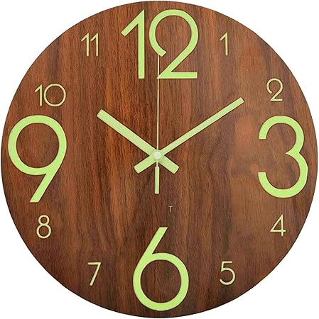 12 inch Luminous Wooden Round Silent Non-Ticking Quartz Wall Clocks, Large Numbers and Hands, Easy to Read Both Day and Night (Large Digital)
