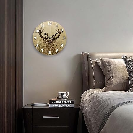 Battery Operated Wall Clocks 12 Inch,Deer in Wild,Silent Home Decor for Bathroom,Living Room,Bedroom