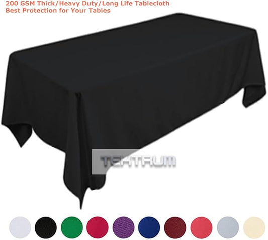 TEKTRUM 60 X 84 INCH 60"X84" RECTANGULAR POLYESTER TABLECLOTH - THICKHEAVY DUTYDURABLE FABRIC (Black)