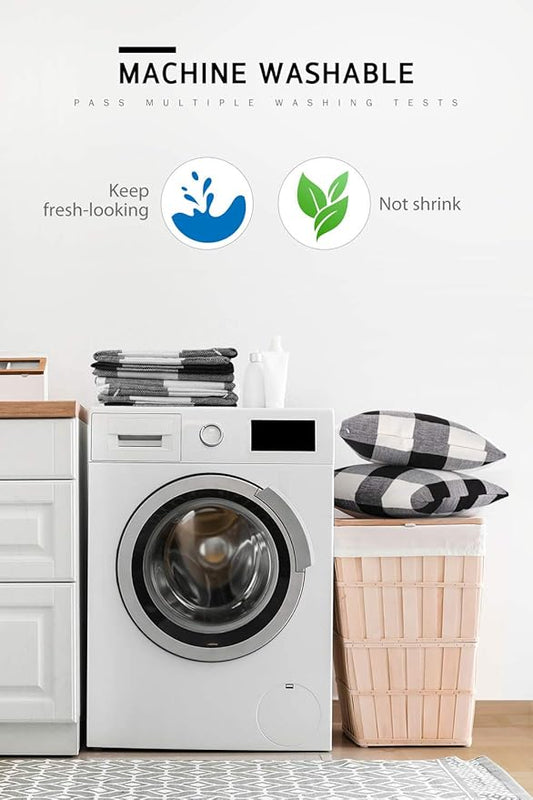 Syntus Set of 2 Buffalo Check Throw Pillow Covers Farmhouse Outdoor Plaid Square Pillow Cushion Case Black and White Polyester Linen for Christmas Thanksgiving Decor Car Bed Sofa, 18 x 18 inches