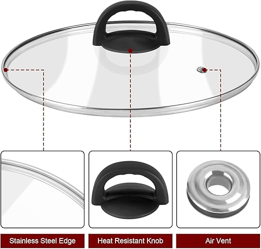 Tempered Glass Pan Lid, 8" Pot Lid with Heat Resistant Handle, Pan Cover for Frying Pan, Skillet, Cast Iron, Wok, Universal Cookware