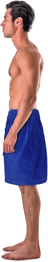 Turkish Cotton Terry Velour Adjustable Body Wrap Towel for Men (Royal Blue, One Size)