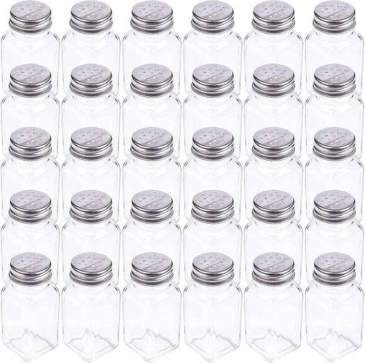 Tebery 30 Pack Glass Salt and Pepper Shaker Set with Stainless Steel Mushroom Top, 2.7oz Spice bottle for Kitchen, Restaurants and Catering, Classic Design