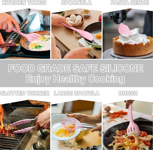 Umite Chef 22Pcs Silicone Cooking Utensils Set, Heat Resistant Silicone Kitchen Spatulas Set with Holder, Cooking Gadgets Tools Set for Nonstick Cookware, Dishwasher Safe(Pink)