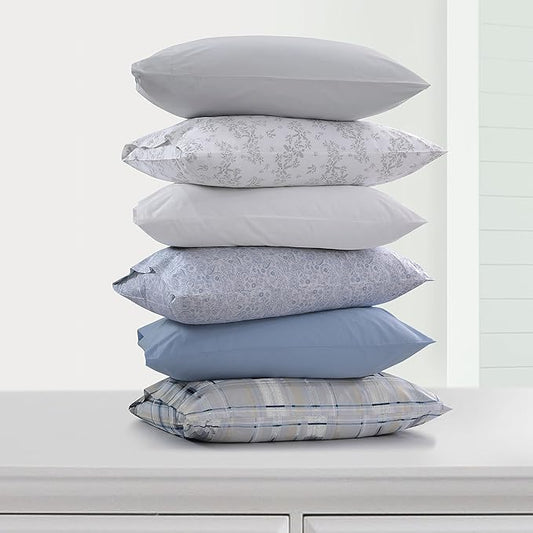 Tribeca Living Cotton Percale California King Size Bed Sheet Set, 300 Thread Count, Extra Deep Pockets, Printed Danielle Paisley Blue