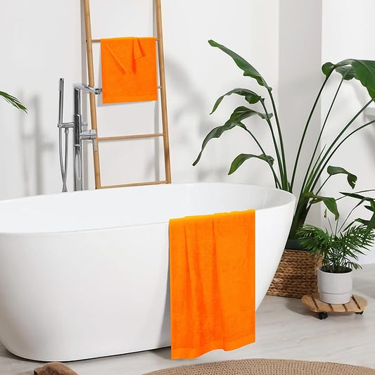 Ultra Soft 3 Pack Cotton Towel Set, Contains a Bath Towels 28x55 inch, a Hand Towels 16x24 inch a Wash Coths 12x12 inch, Ideal Everyday use, Compact Lightweight - Orange