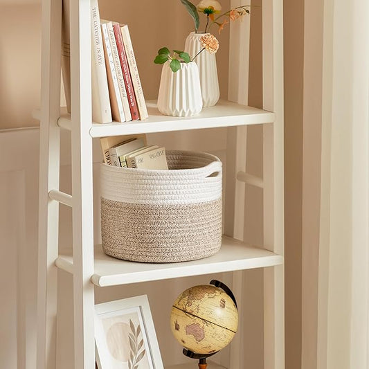 UBBCARE 2 Pack Small Basket for Organizing, Round Woven Basket With Handles, Small Storage Basket for decor, Beige Brown Cotton Rope Basket (9.5" x 9.5" x 7.1")