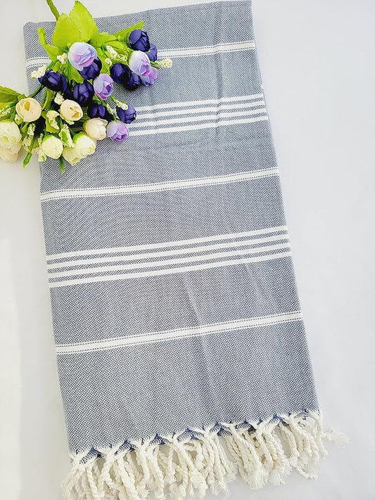Turkish Towel Fouta Peshtemal for Beach Bath Spa Yoga Hammam Gym Pool Wrap Pareo Sarong 100 Cotton (Navy Blue)