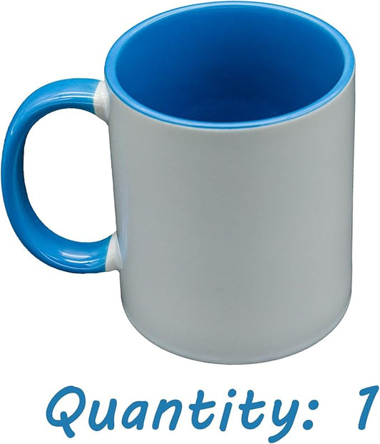 Sublimation Mugs 11 Oz, Light Blue Inner Handle - Premium Coffee Cups for Heat Press Projects - Versatile Coffee Mug Design Ideal for Personalized Creations, 1 Piece Set