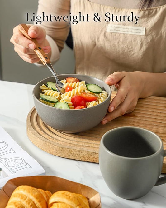 Soup Bowls Set of 6, 24 oz Cereal Bowls for Kitchen, Ceramic Bowls Set for Pasta, Ramen, Oatmeal, Dessert, Stoneware Bowls Set for Gift, Dishwasher Microwave Oven Safe, Matte Gray