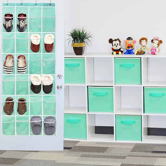 Simple Houseware 24 Pockets - Crystal Clear Over The Door Hanging Shoe Organizer, Turquoise (64'' x 19'')