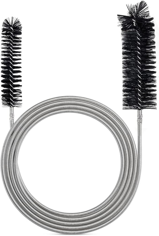 Extra-Thick Drain Brush with Stronger Spring - 67-Inch Flexible Pipe Cleaning Tool - Dual Bristle Heads - Ideal for Curved Pipes and Slim Holes a Black