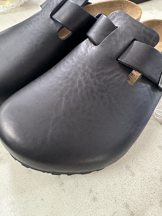 Birkenstock Women's Clogs Boston SFB Iron Oil LTR N, 36 EU Schmal