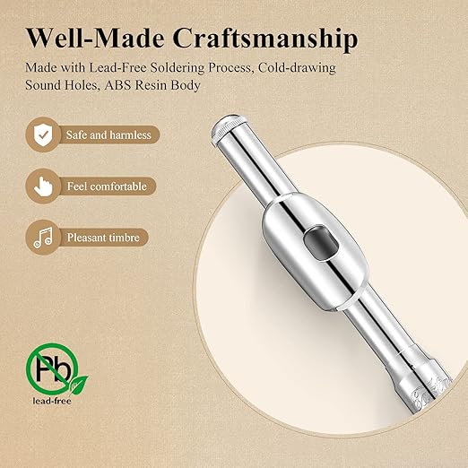 Eastar Piccolo Instrument for Beginners Students, Key of C Piccolo Flute, Resin, with Hard Case, Cleaning Rod, Cloth, Swab and Gloves, 2-Piece, Silver Plated Piccolo, Black, EPC-3S