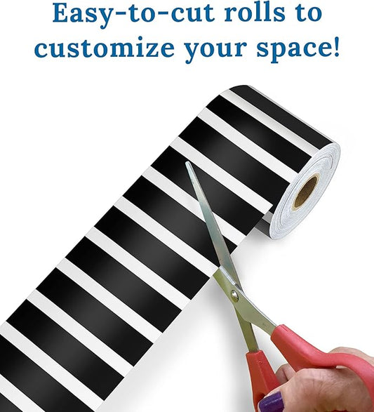 Carson Dellosa 65Ft of Black and White Stripes Bulletin Board Borders, 1 Roll of Trim for Rolling Whiteboard, Posterboard, Party, Office Decorations, and Classroom Decor