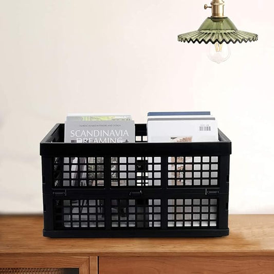 34 L Black Plastic Folding Storage Crates, Collapsible Crates, 2 Packs
