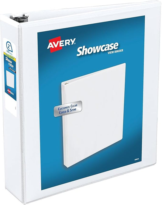 Avery Economy Showcase View 3 Ring Binder, 2 Inch Slant Rings, 1 White Binder (19701)