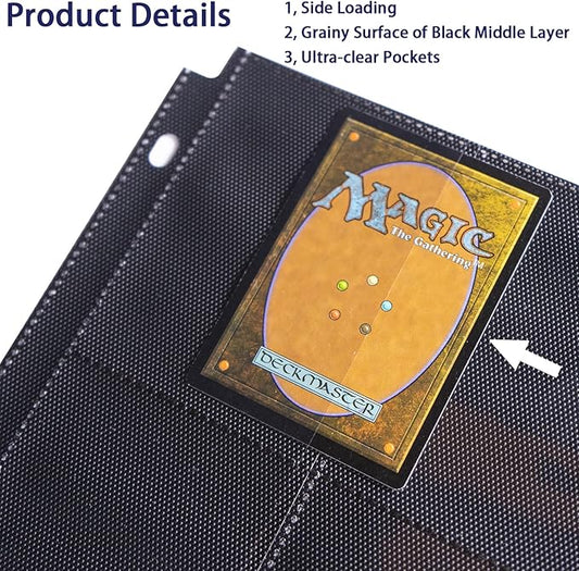 20 Pack 360 Pockets Black Trading Card Sleeves Binder Sheets, Double Sided Thicken Game Card Sleeves for 3 Ring Binder, 9 Pocket Side Loading Page Protector for MTG, Yugioh, Game, Baseball Cards