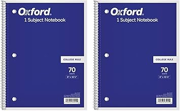 Oxford 1-Subject Notebook, 8 x 10-12, College Rule, 70 Sheets (65022) (Pack of 2)