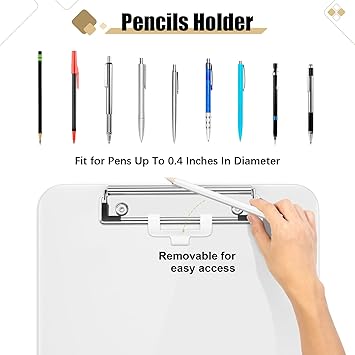 Hongri Plastic Clipboard, White 8.5x11" Clipboard, A4 Letter Size Clipboards for Nurses, Students, Office and Women, Clipboard with Pen Holder and Low Profile Clip, Size 12.5 x 9 Inch(White)