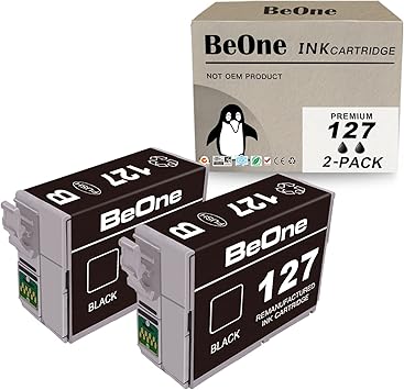 BeOne Remanufactured Ink Cartridges Replacement for Epson T127 127 to use with Workforce 60 545 630 633 635 645 840 845 WF-3520 WF-3530 WF-3540 WF-7010 WF-7510 WF-7520 Printer (2 Black)