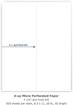 PrintWorks Professional Perforated Paper for Menus, Booklets, Forms and More, 8.5 x 11, 20 lb, 1 Vertical Perf 4.25" From Left, 500 Sheets, White (04339)