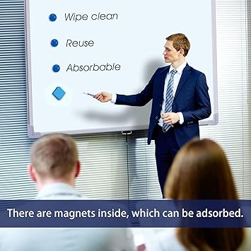 Mini Dry Erase Erasers, RNKP 24 Pack Magnetic Whiteboard Dry Erasers Chalkboard Cleaner Wiper for Kids and Classroom Teacher Supplies, Home and Office (2 x 2 Inch) Sky Blue