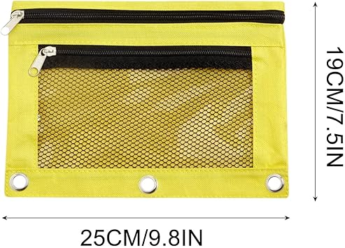 Pencil Pouch for 3 Ring Binder, Clear Window Pencil Case for Binder, Pencil Bags with Zipper Reinforced Grommets, Pencil Case for Binder, Fabric Pencil Pouch (Yellow)