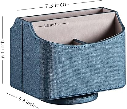PU Leather Remote Control Holder,360 Degree Spinning Desk TV Remote Caddy,Desk Organizers and Accessories,for Controller,Media,Mail,Calculator,Mobile Phone,Pen Storage Holder(Blue Cloth)