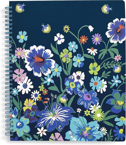 Vera Bradley Blue Floral Large Spiral Notebook with Pocket and 160 Lined Pages, Moonlight Garden