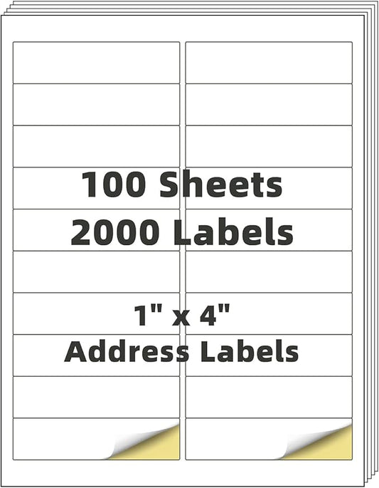 Shipping Address Labels,1" x 4" 2000 Blank Mailing Shipping Labels (20 Labels per Sheet,100 Sheets), Printable White Sticker Labels Compatible with Laser and Inkjet Printers