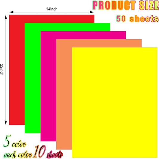 Tenceur 50 Pieces Neon Poster Board 22" x 14" Neon Construction Paper 250 Gsm90 lb Cardstock Large Bright Fluorescent Poster Board for School Craft Project Presentation Drawing Graphic Display