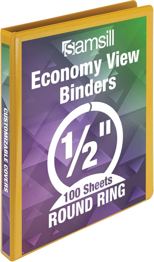 Samsill Economy 0.5 Inch 3 Ring Binder, Made in The USA, Round Ring Binder, Customizable Clear View Cover, Yellow (18515)
