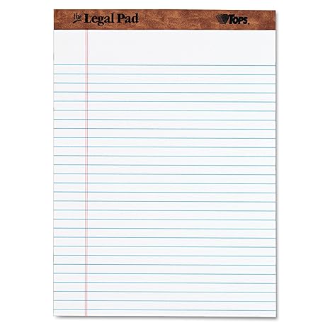 TOPS 75330 "The Legal Pad" Ruled Pads, LegalWide, 8 12 x 11 34, White, 50 Sheets