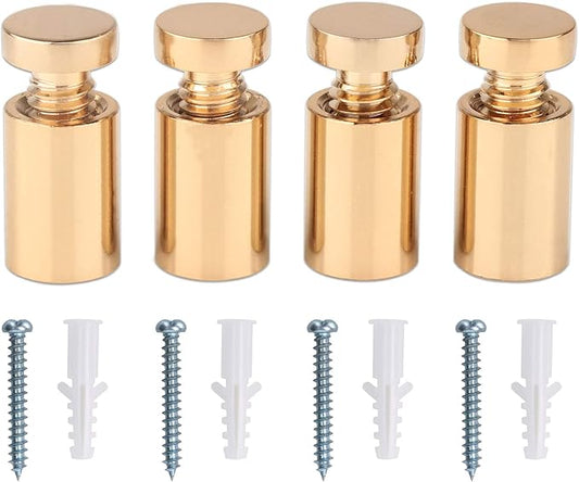 TOPNIKE Brass Flat Top Sign Standoffs, Standoff Holder Screw, 12"x 34", Polished Gold, for Acrylic, Glass, PVC, Glass Panel, Wood, with 2pcs Plastic Spacers, Pack of 4