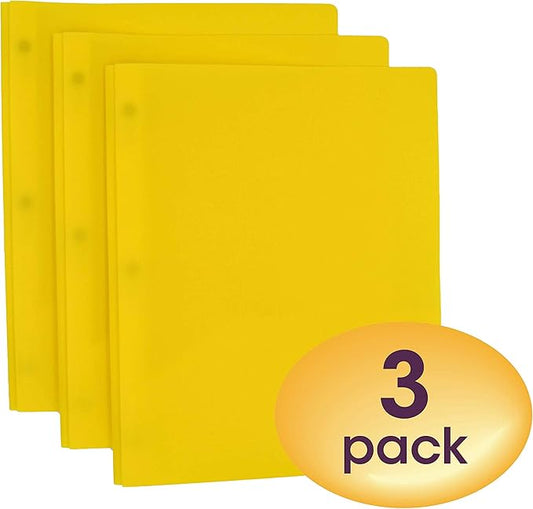 Smead Poly Two-Pocket Folder, Three-Hole Punch Prong Fasteners, Letter Size, Yellow, 3 per Pack (87733)