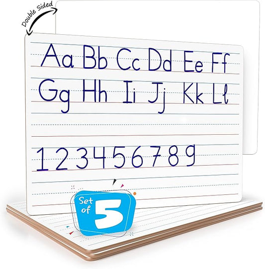 SCRIBBLEDO 5 Pack Double Sided Whiteboard Lined Dry Erase Board for Kids Ruled Writing Board Handwriting Practice for Kids - Small White Board Dry Erase Board 9x12 Dry Erase Board with Lines Student