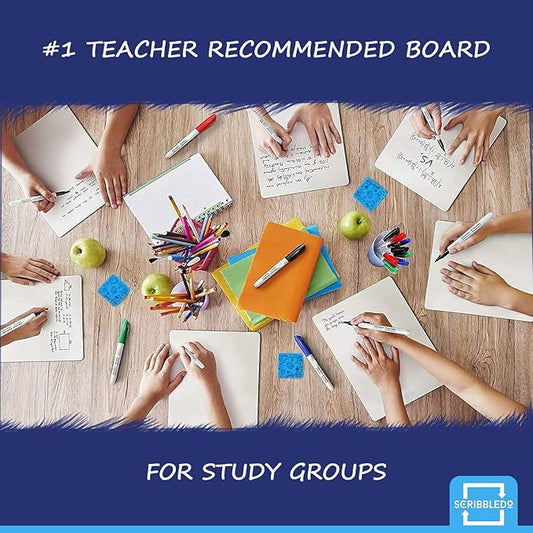 Scribbledo 12 Small White Board Dry Erase Boards Classroom Pack Mini White Boards 9"x12Au Double Sided Personal Whiteboards for Students Teachers School Supplies Lapboards Mini Whiteboard Erasers Incl