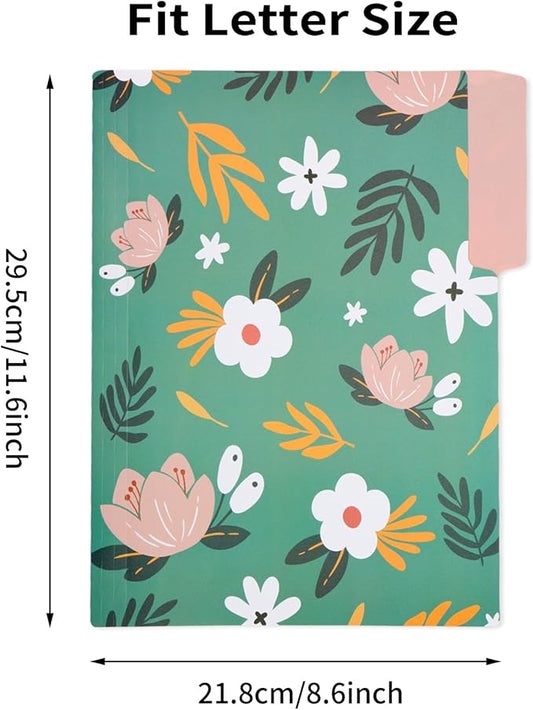 EOOUT 9pcs Decorative File Folders Letter Size, 13-Cut Tabs Plastic File Folders for Documents with Colorful Floral Patterns and Erasable Category Labels for Notes Office and School Supplies
