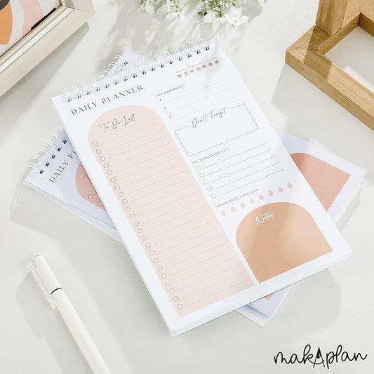 Daily Planner To Do List Notepad 60 Undated Pages,Apricot,Twin-ring Spiral Bindling 6x9 Inch Desktop Daily Planning Notepad with Protective Cover,Notebook for Daily Tasks, Water Intake, Habit Tracker