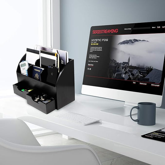 Executive Office Solutions Vintage Rustic Wooden Office Desk Organizer & Mail Rack For Desktop, Tabletop, or Counter - Distressed Torched Wood-Store Supplies, Desk Accessories, Mail Black (WO3)