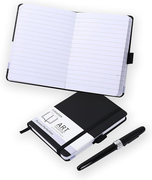 Pocket Notebook, Small Notebook 4.25"x 5.75", Mini Ruled Lined Journal, Smooth College Leather Hard Cover Notebook, Business Gift Office Supplies for Men Women, 160 pages, Pen Holder (Black)