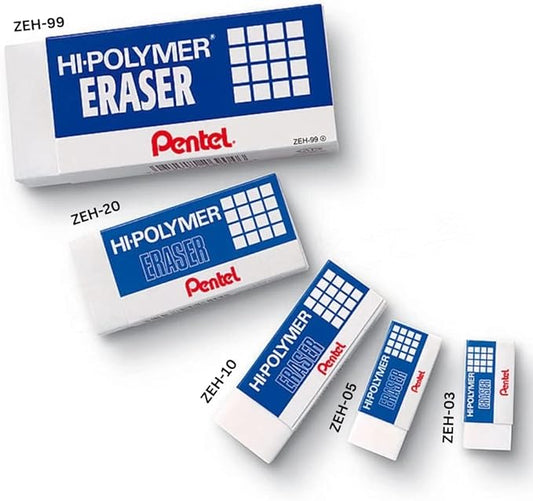 Pentel Super Hi-Polymer Eraser, Large, Nonabrasive, White (PENZEH10)