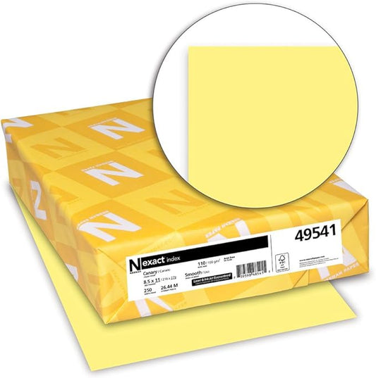 Neenah Paper Exact Index Card Stock, 110 lb Index Weight, 8.5 x 11, Canary, 250Pack
