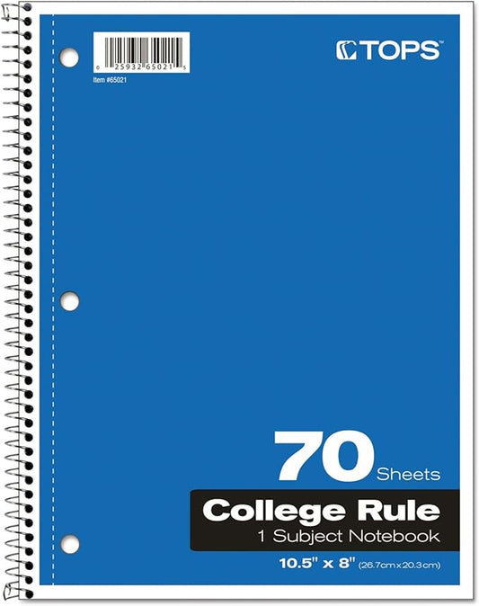 Oxford Spiral Notebook, 1-Subject, College Ruled Paper, 70 Sheets, Color May Vary, 1Notebook (65021) (Pack of 1)