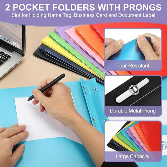 PATIKIL Pocket Folders with Prongs, 12 Pcs Heavy Duty Plastic Pocket Folders with 3 Fasteners Fit Letter Size Paper for Resume Documents Files Letters, Yellow