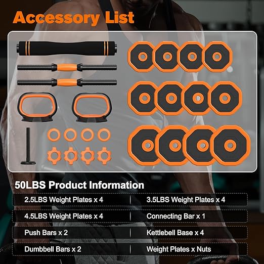 DERACY Adjustable Dumbbells 6 in 1 Weight Set, Dumbbell, Barbell, Kettlebell and Push-up, Home Gym Fitness Workout Equipment for Men and Women
