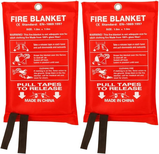 Aksipo Fire Blanket Fiberglass Fire Emergency Blanket Suppression Blanket Flame Retardant Blanket Emergency Survival Safety Cover for Kitchen Home House Car Office Warehouse, 2 Pack (39.3X 39.3 inch)