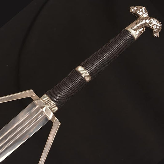 Full Metal Geralt's Silver Steel Sword 125cm/48.8 inches, Runes Engraved on The Blade, Stainless Steel,White Wolf Sword,Aerondight Silver Sword Handmade Anime Cosplay Prop for Display and Collection