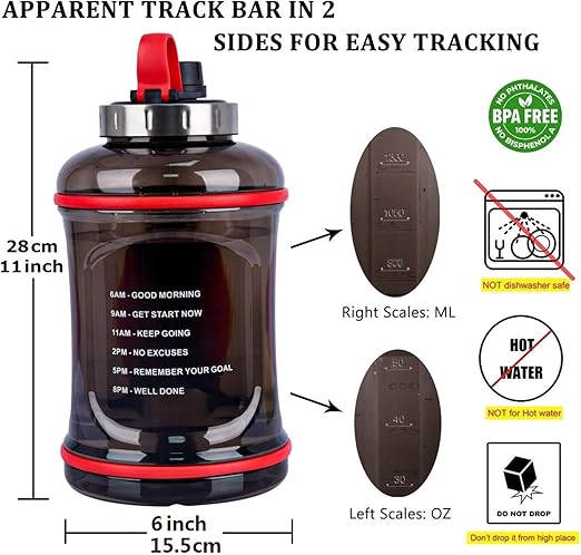0.9 Gallon Water Bottle Sports Water Jugs Robust 108oz Large Reusable Water Bottles Leak Proof Motivational Plastic Drinking Container for Sport Travel Camping Outdoor